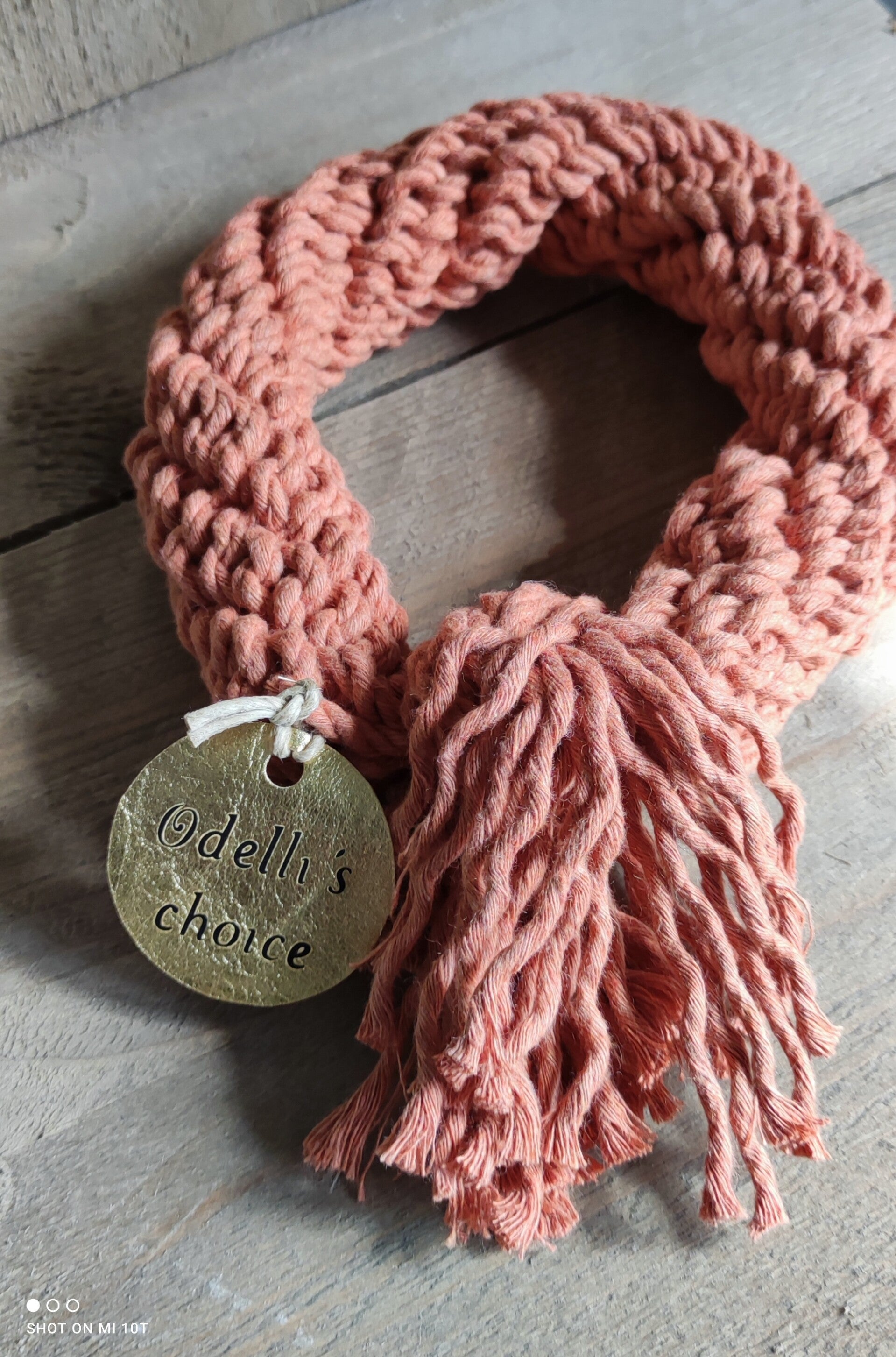Het hondenspeeltje is handgemaakt en milieuvriendelijk. Deze hondenspeeltjes zijn gemaakt van 100% gerecycleerd katoen met oeko-tex 100 certificatie. Extra veilig om in te bijten.