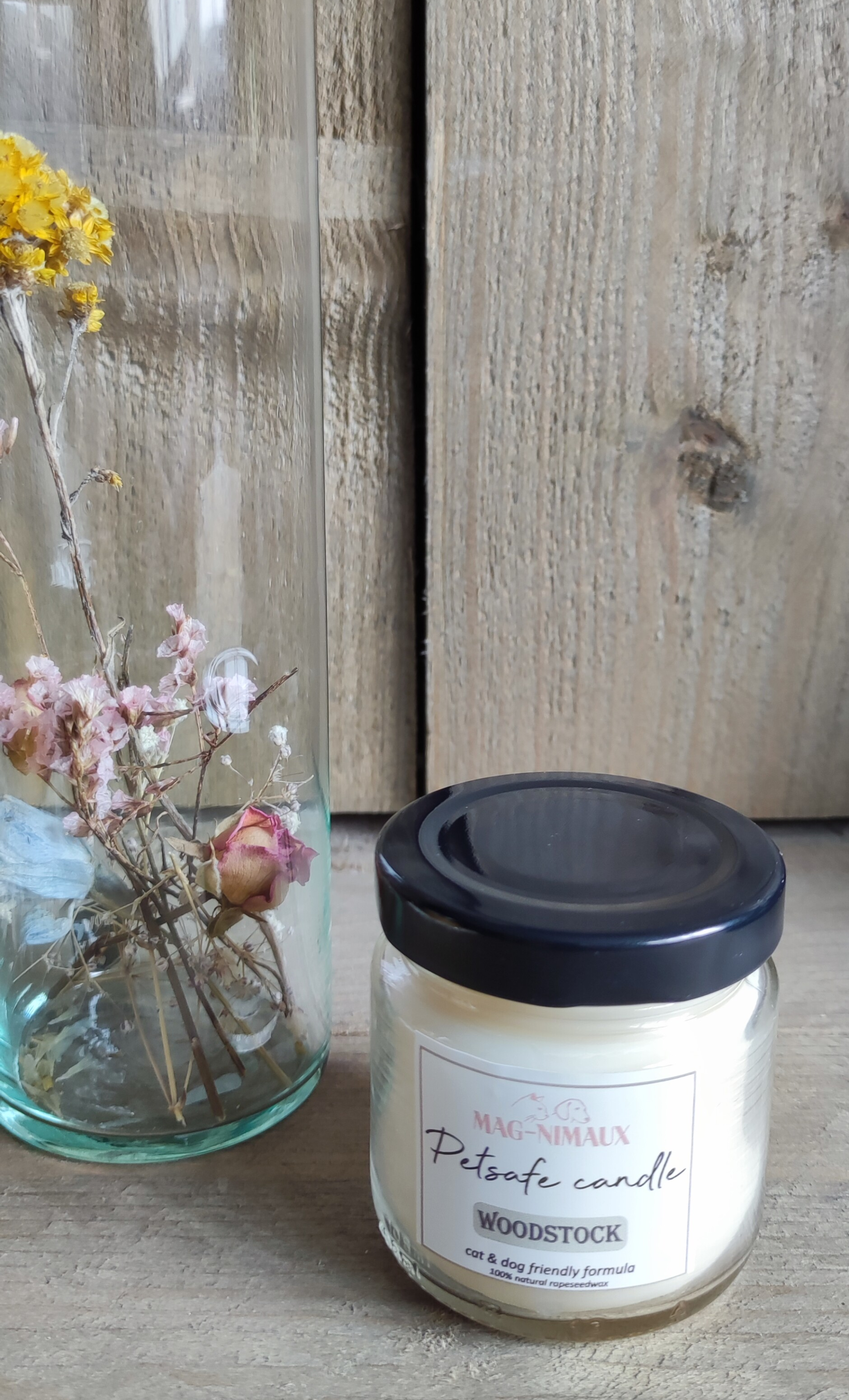 Maar! wist u dat de meeste geurkaarsen op basis van paraffine of aardolie zijn en dat dit niet veilig is voor onze huisdieren? In deze petsafe candle van Mag-nimaux vindt u daarom geurkaarsen op basis van 100% koolzaadwas met een katoenen lont,alsook natuurlijke geuroliën. Deze geurkaarsen neutraliseren op een veilige en effectieve manier (huisdier)geurtjes. En het maakt het ook enorm gezellig!